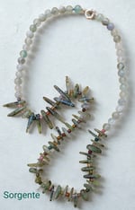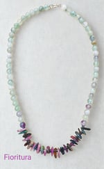 •Sorgente: Pietre utilizzate sono Fluorite e Granato verde. Chiusura in argento925. Lunghezza 51cm