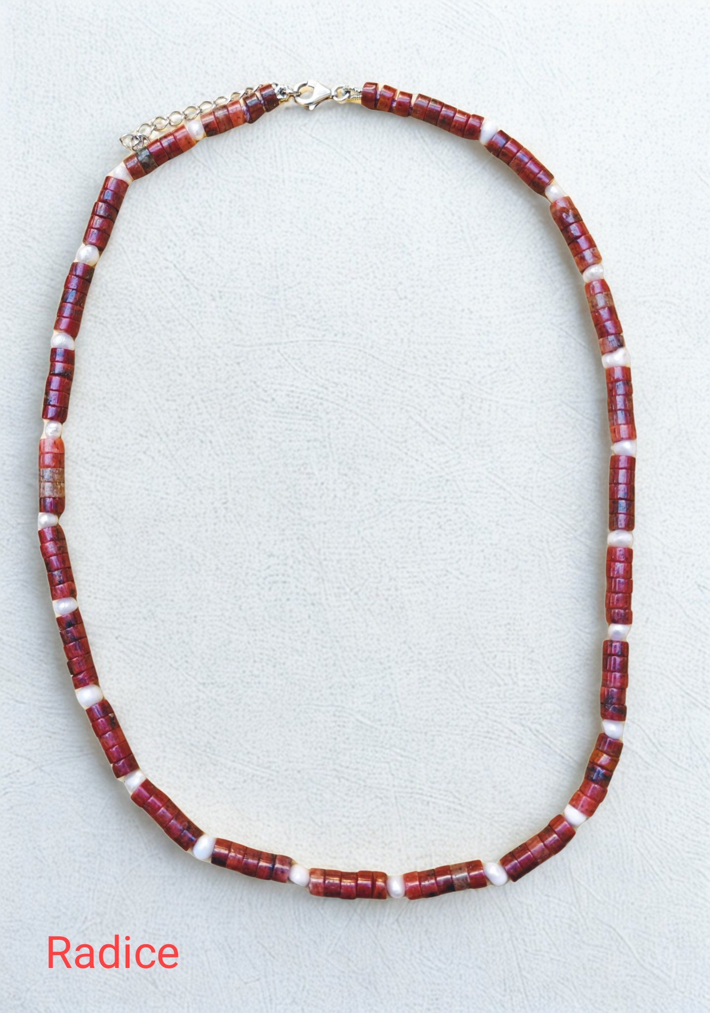 • Radice: pietre Diaspro Rosso e perle. Chiusura Argento925.